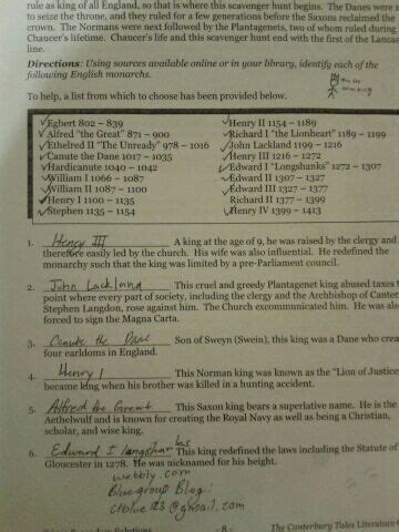 TIU - Reading Online Pre Activity Monarchy Scavenger Hunt Answers rtf Gutenberg